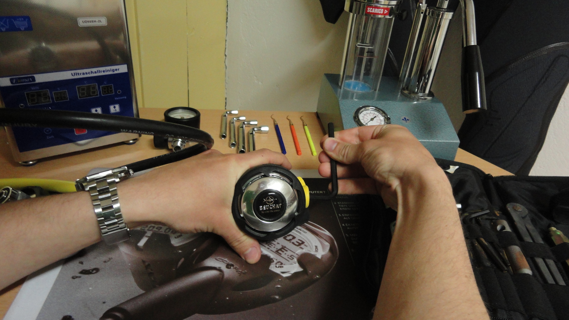 In diesem Kurs werden wir nicht nur eine erste und zweite Stufe eines Lungenautomaten komplett zerlegen und wieder zusammenbauen, sondern unter fachkundiger Leitung auch regulieren und einstellen.